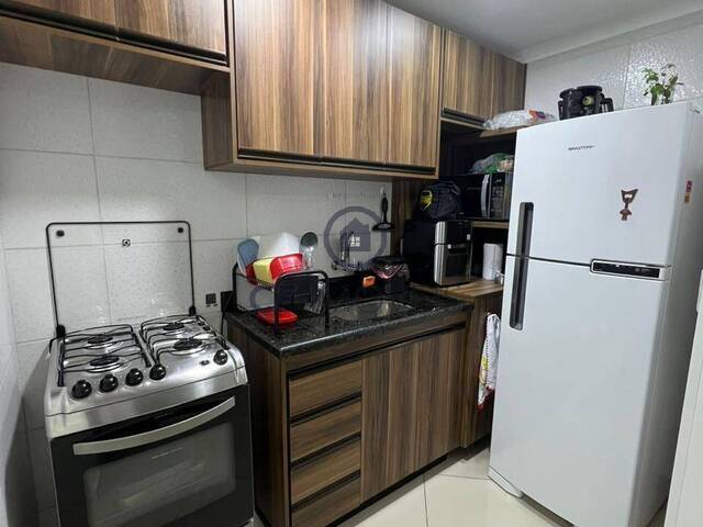 - Cozinha equipada com geladeira, fogão e armários planejados;